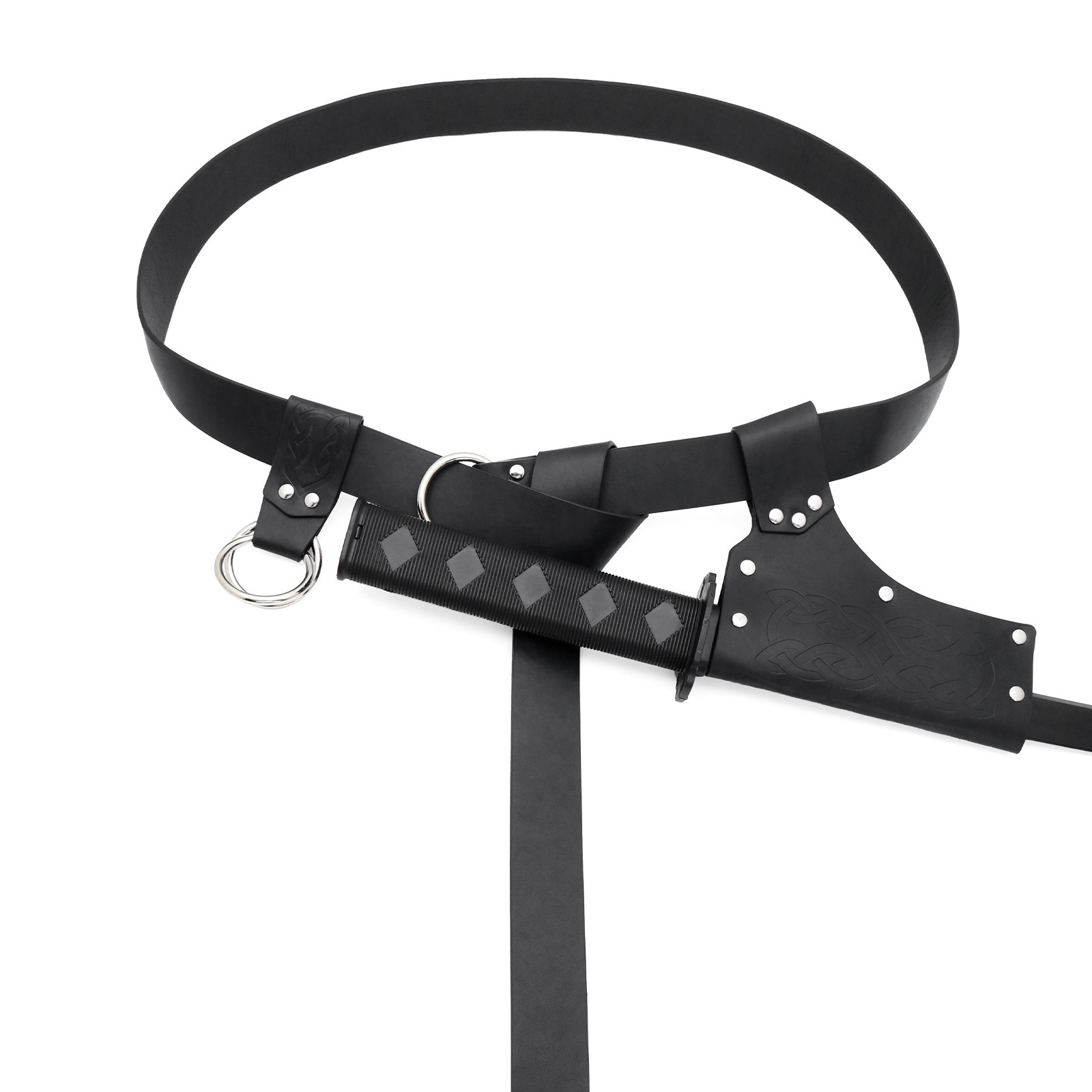 A durable PU leather belt with a medieval knight-inspired design, perfect for everyday wear or cosplay.