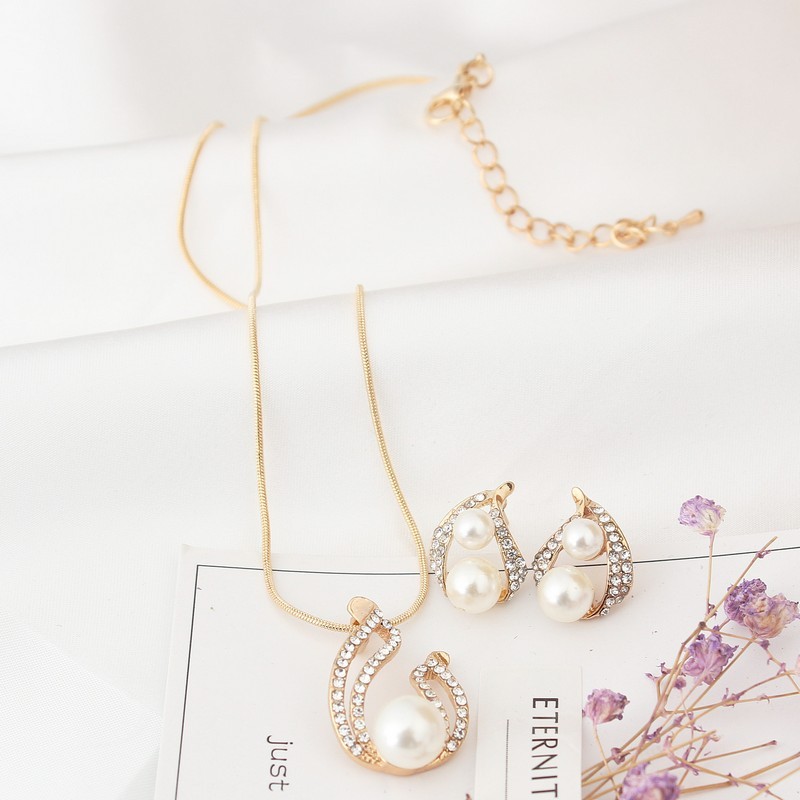 Weddings are one-of-a-kind moments, and your jewelry should be equally unforgettable. The exquisite bridal jewelry set is designed to remain timeless, blending traditional elegance with modern sophistication. Its delicate pearl and gemstone details create a luxurious, radiant look that complements any bridal style. Wearing this set ensures that every photograph, every memory, and every glance will capture the essence of your special day.